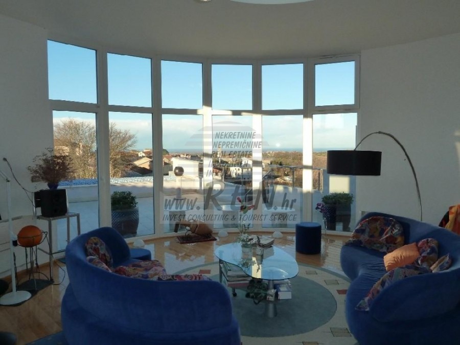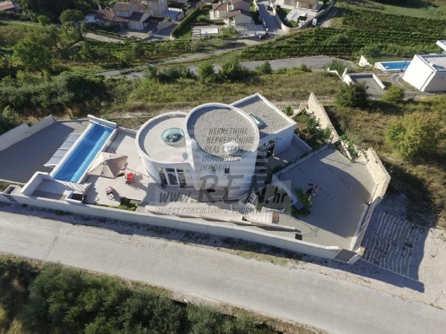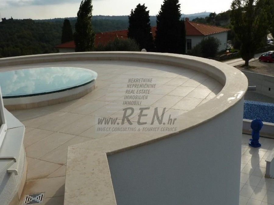 Vila kategorizirana sa 5 zvjezdica ima ukupno 318 m2, zemljišta ima 841 m2, udaljena je 15 min. (16km) od mora i od prekrasne uređene prirodne plaže, 10 min. (5km) udaljeni ste od centra Buja. Kuća je samostojeća te ima suteren, prizemlje i prvi kat. Ukupno ima 4 spavaće sobe, 2 kuhinje, 2 dnevne sobe, 3 kupatila, WC, spremište. Kuća ima vlastiti parking, 2 terase, bazen, garaža, vanjski tuš. Luksuzno opremljena, kamin, klima jedinice te alarmni sustav, 7 kamera. Prekrasan pogled na more.