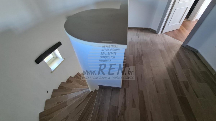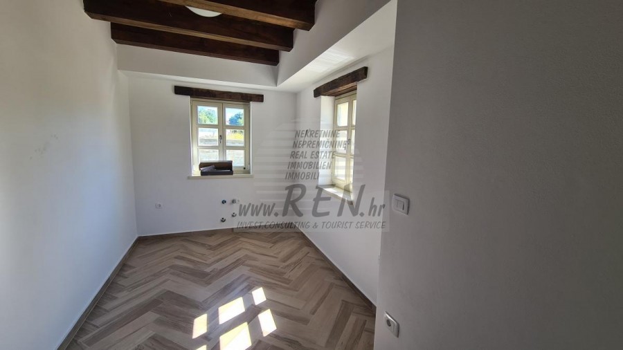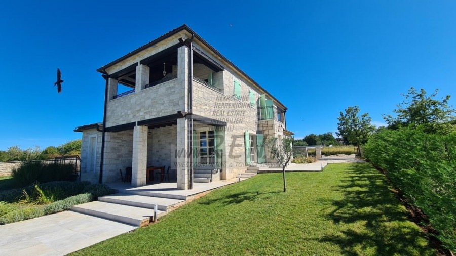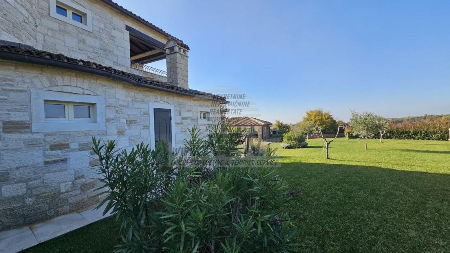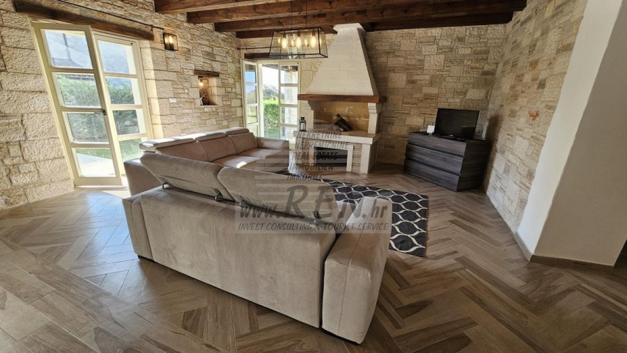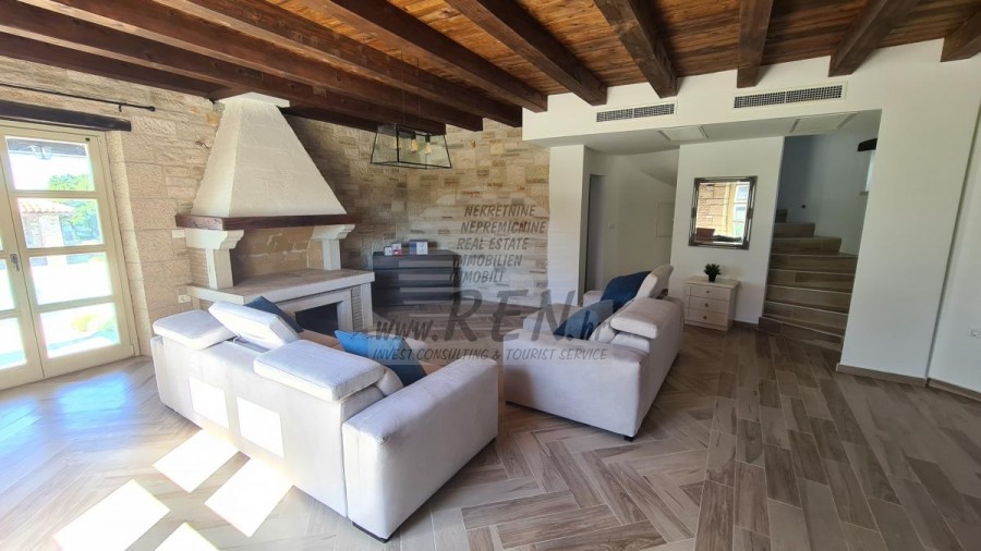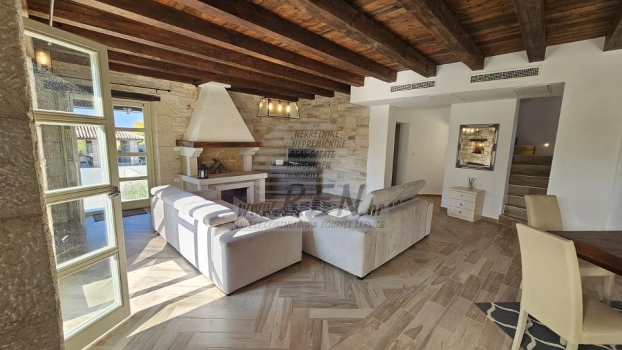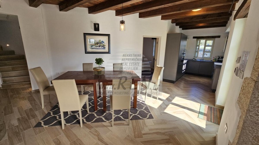 Kuća površine 250 m², smještena na prostranom zemljištu od preko 1.500 m², raspoređena je na dvije etaže i pažljivo uređena kako bi svaki kutak pružio udobnost i toplinu doma. Svaka spavaća soba ima izlaz na terasu, gdje jutarnje sunce i blagi povjetarac stvaraju savršenu atmosferu za opuštanje. Unutrašnjost odiše elegancijom — svijetli prostori, moderna kuhinja i dnevni boravak s kaminom savršeno se stapaju s tradicionalnim kamenim zidovima i drvenim gredama.