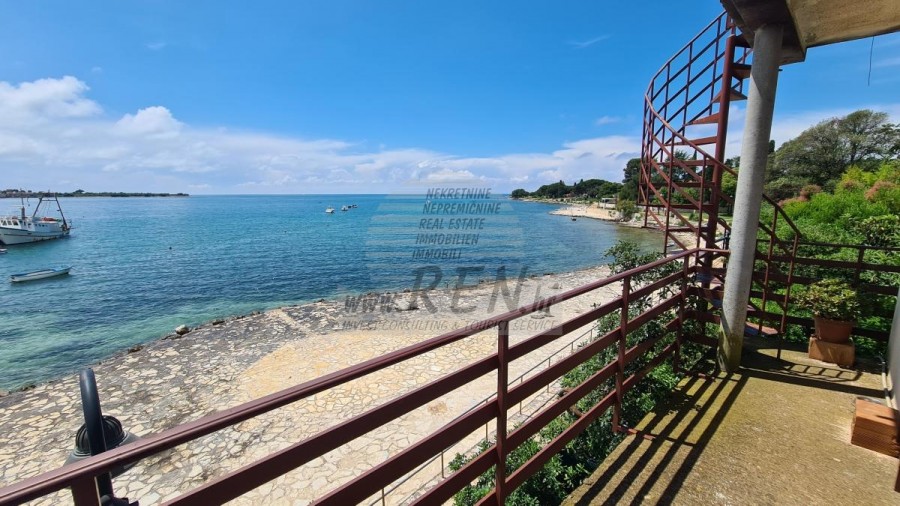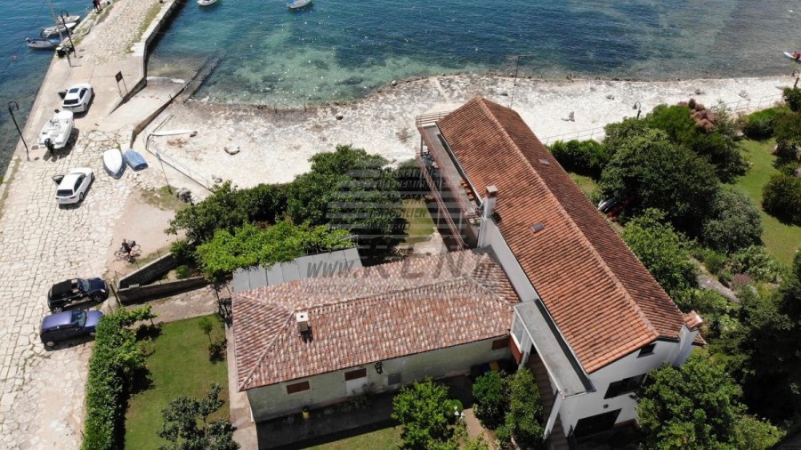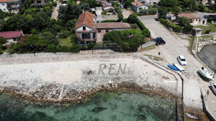 Kuća ima ukupno 350 m2, zemljišta ima 833 m2, udaljena je 1 min. (5m) od mora i od prekrasne uređene prirodne plaže, 10 min. (7000m) udaljeni ste od centra grada Umaga. Kuća se sastoji od prizemlja, prvog kada te tavana. Pogled na more, vlastiti parking, prvi red do mora. Potrebna adaptacija.