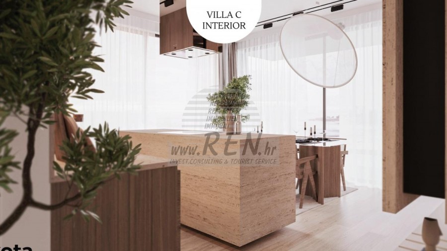 Vila C14 ima ukupno 267,78 m2, zemljišta ima 564 m2, udaljena je 5 min. (100m) od mora i od prekrasne uređene prirodne plaže, 10 min. (6000m) udaljeni ste od centra Umaga. Kuća ima prizemlje i prvi kat. U izgradnji. Ukupno ima 5 spavaće sobe, kuhinja, dnevna soba, 4 kupatila, spremište. Kuća ima 2 vlastita parkinga, 2 terase sa prekrasnim pogledom na more, kamin, klima, bazen, luksuzno opremljena. U privatnom resortu sa recepcijom, mogućnost zajedničkog korištenja teretane, wellnessa, dječjeg igrališta, Wine Bar, 24 satni nadzor, stanica za punjenje električnih auta, dostupni paketi održavanja objekta.