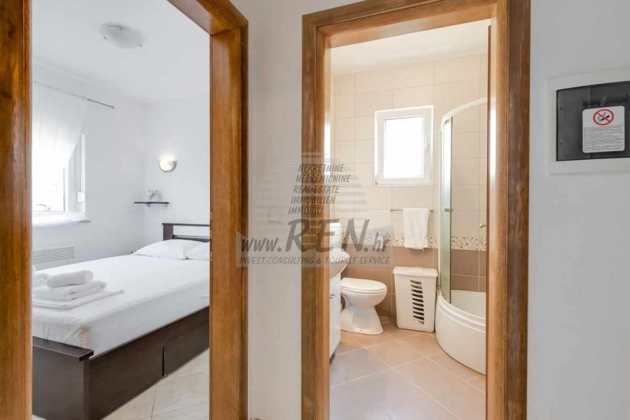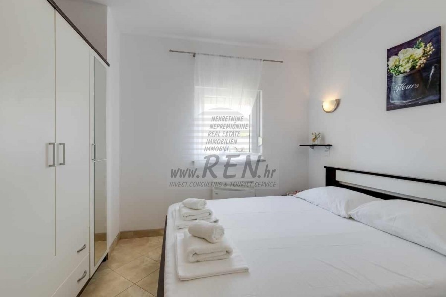 Dvojna kuća u okolici Novigrada ima ukupno 65 m2, ima 2 kompletno opremljena stana spremna za najam (jedan u prizemlju drugi na prvom katu) izgrađena je 2013 godine, udaljena je 5 min. (700m) od mora i od uređene plaže, 10 min. (5000m) udaljeni ste od centra grada Novigrada. Ukupno se sastoji od 2 kuhinje/dnevnog boravaka sa blagovaonicom, 2 kupatila, 2 sobe, 2 terase. Opremljen je klima uređajem, prodaje se sa namještajem, vlastiti parking.