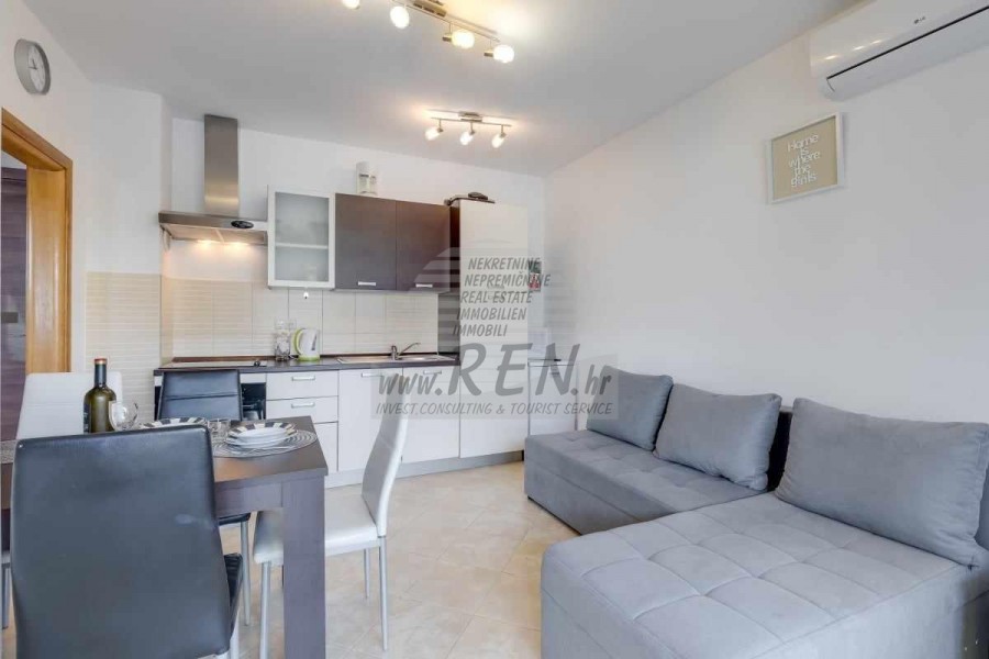 Udaljena 200 m od trgovine, 200 m udaljen je od restorana, 300 m udaljen je od tržnice, doktor je udaljen 5000 m, apoteka je udaljena 5000 m, aerodrom Pula udaljen je 70 km, te aerodrom Portorož udaljen je 20 km, marina Novigrad udaljena je 5000 m.