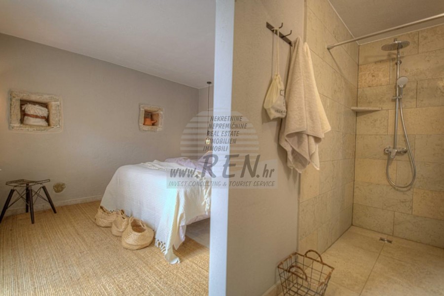Kuća je udaljena 100 m od trgovine, 100 m udaljena je od restorana, 100 m udaljena je od tržnice, doktor je udaljen 10km, apoteka je udaljena 10km, aerodrom Pula udaljen je 43 km, te aerodrom Portorož udaljen je 55 km, marina Vrsar 20 km.