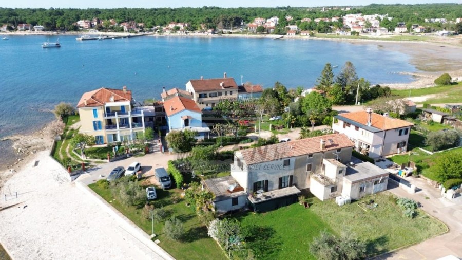 Kuća ima ukupno 260 m2, zemljišta ima 468 m2, udaljena je 1 min. (5 m) od mora i od prekrasne uređene prirodne plaže, 10 min. (4 km) udaljeni ste od centra grada Novigrada, 15 min. (7 km) udaljeni ste od Umaga. Kuća je dvojna te ima prizemlje, prvi kat i tavan. Potrebna kompletna adaptacija.