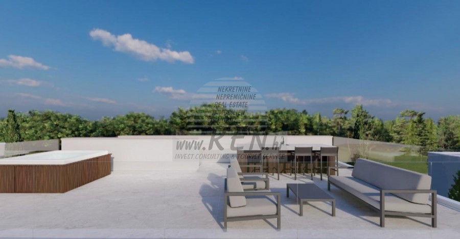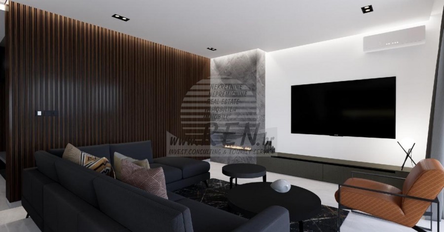• Dnevni boravak je opremljen vrhunskim talijanskim namještajem marke Tomasella, Sedit-Italia, Veneta Cucine, a sjedeća garnitura je marke Natuzzi.