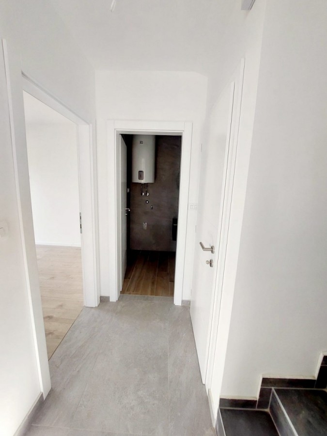 Unutarnje stubište vodi na 2 etažu gdje su smještene 3 spavaće sobe, svaka s kupaonicom, te balkon. Kuća je opremljena za potrebe grijanja i hlađenja sa klima uređajem, pvc stolarijom, te 2 parkirna mjesta. . Idealna za obitelj ili najam kao kuća za odmor s privatnim bazenom. ( bazen je opcija i nije u cijeni )