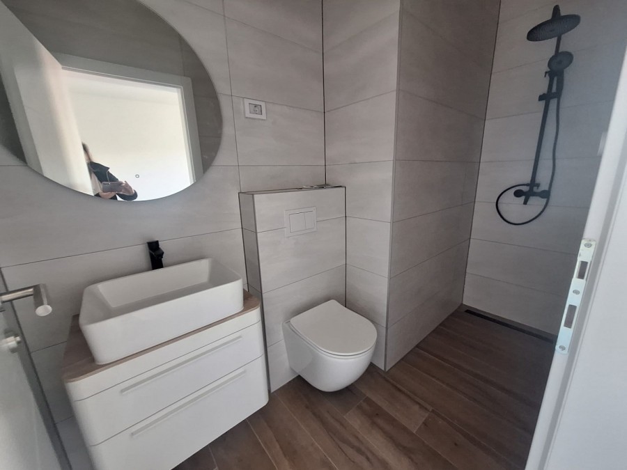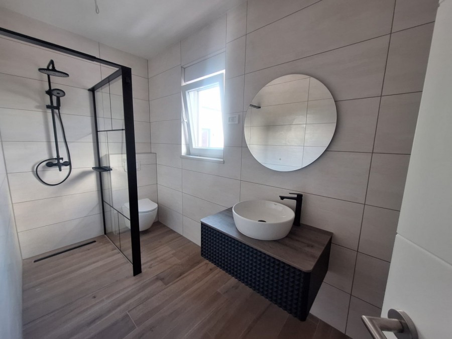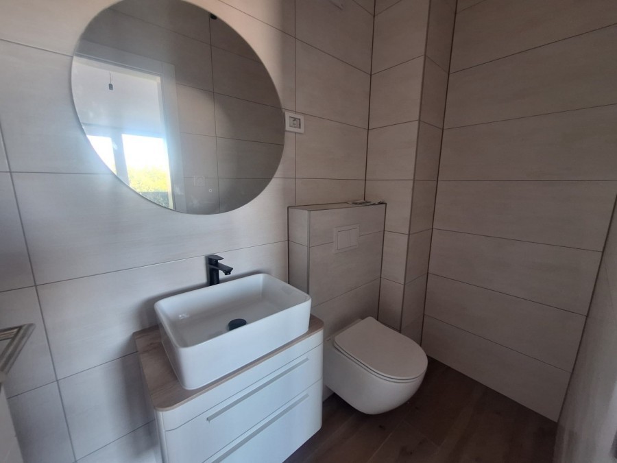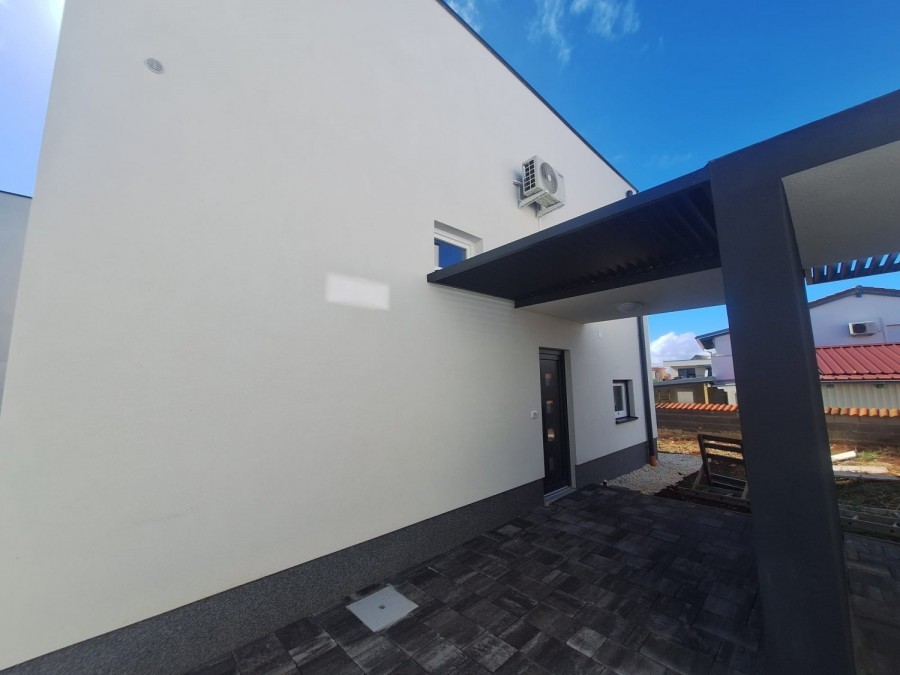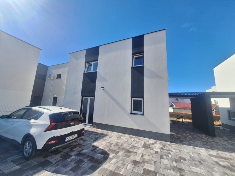 Medulin, izvrsna lokacija kuća od 120m2 , novogradnja. Na prodaju je useljiva kuća na parceli gdje se nalaze ukupno 3 kuće. Svaka kuća ima 2 parkirna mjesta te manju okućnicu. Kuća 1 je djelomično vezana uz kuću 2 i sastoji se od predprostora , spremišta, kupaonice, hodnika, sobe, dnevnog boravka s kuhinjom s izlazom na natkrivenu terasu. Unutarnje stubište vodi na 2 etažu gdje su smještene 3 spavaće sobe, svaka s kupaonicom, te balkon. Kuća je opremljena sa klima uređajem za potrebe grijanja i hlađenja , pvc stolarijom, komarnicima , kvalitetnom stolarijom i keramikom , te joj pripadaju 2 parkirna mjesta. Idealna za obitelj ili najam kao kuća za odmor s opcijom gradnje privatnog bazena koji nije u cijeni.