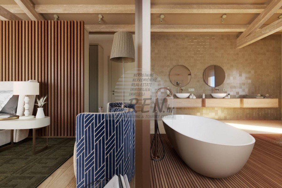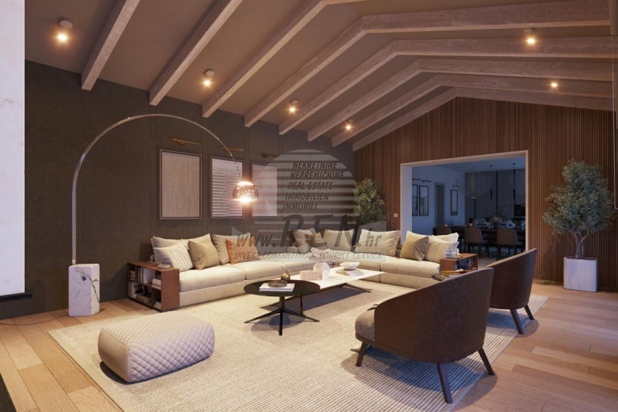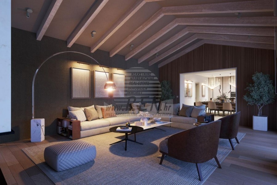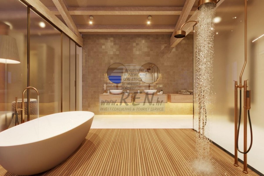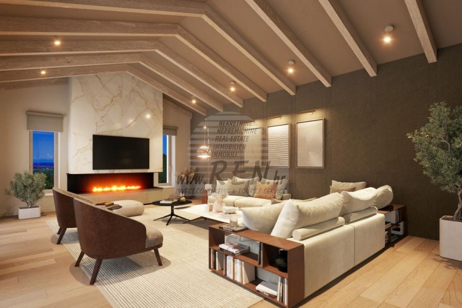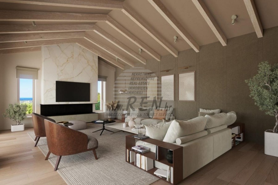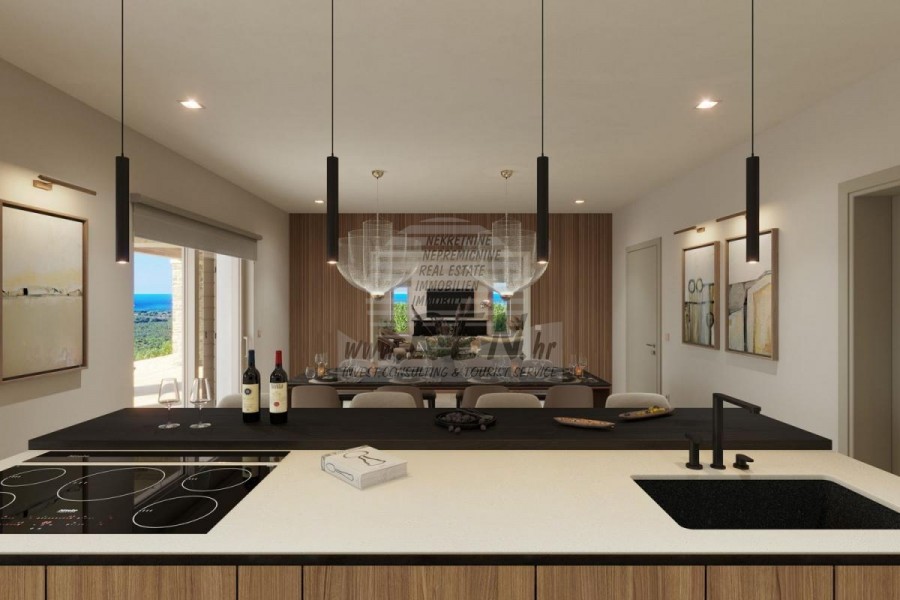 Luksuzna villa s jednim od najljepših pogleda u Istri nalazi se u mirnom i malom mjestu u okolici Buja, iz kojeg se pruža čaroban pogled od planine Učke, rijeke Mirne i mora te čak do Alpa. Plivajući u bazenu možete uživati u pogledu na dolinu rijeke Mirne, lovište i Motovunsku šumu poznatu po čuvenom Istarskom tartufu. Kompletno imanje od 1500 m2 ograđeno i udaljeno od ostalih kuća. Te je okruženo maslinikom. Imanje je novo sagrađeno u skladu sa ekološkim standardima, isključivo sa prirodnim materijalima kao što je kamen/drvo, okućnica je uređena isključivo sa domaćim biljkama, masline. Vila ima 3 spavaće sobe sa pripadajućim kupaonicama. Dnevni dio prostire se na 80m2, te obuhvaća luksuznu kuhinju sa otokom opremljenu najmodernijom suvremenom tehnologijom… tu je i blagovaonica, kao i dnevni boravak sa kaminom te prekrasnim pogledom na more, te ima dvoja francuska vrata koje vode na vanjsku terasu, sunčalište, bazen, ljetnu kuhinju i travnjak. U podrumu nalazi se Wellness te fitnes iz kojih se također pruža prekrasan pogled. Sav namještaj potpisuju dizajneri i rađen je po mjeri. Objek je opremljen sa najsuvremenijim sistemom centralnog grijanja i hlađenja, kao i solarnim panelima, a sve kupaonice imaju i podna grijanja. Bazen osim sunčališta, očaravajućih pogleda, mira nudi i posebno veliki vanjski tuš. Na imanju se nalazi i parking za pet automobila, kao i svi dodatni sadržaji kao što su; vanjski roštilj.