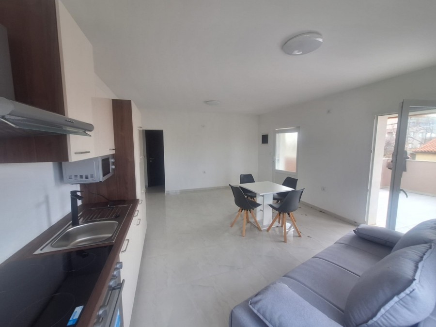Drugi apartman je na katu a čine ga dnevni boravak sa kuhinjom i blagovaonom , spavaća soba , kupaona te terase sa pogledom na more.