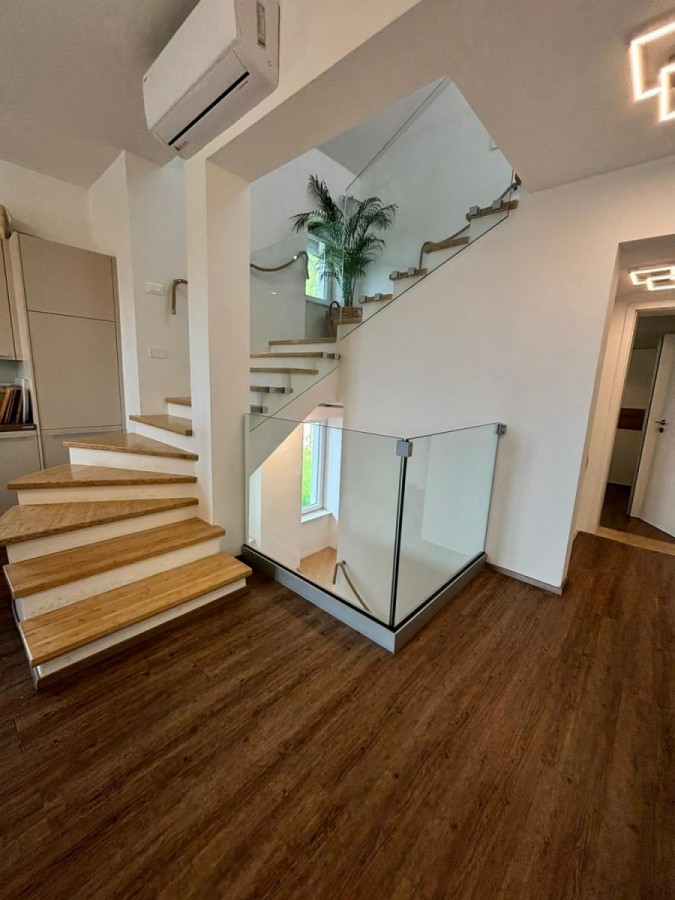 Na izuzetno atraktivnoj lokaciji u Puli, svega nekoliko minuta hoda od mora i borove šume, smjestio se ovaj elegantan, troetažni stan s privatnim vrtom od 150 m², smješten u prekrasnoj austrougarskoj vili iz 1913. godine. Potpuno renovirana 2023. godine, vila zadržava svoj izvorni šarm, dok interijer stana nudi suvremeni komfor i profinjen stil.