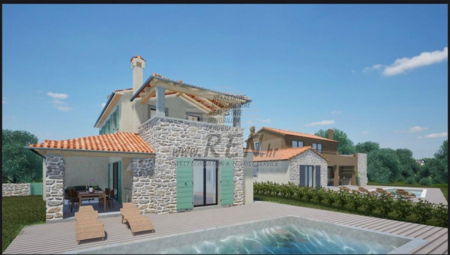 Na prodaju je lijepa kamena kuća koja se nalazi na mirnoj lokaciji u okolici Novigrada. Kuća ima 164 m2 neto ( 183 m2 bruto ) i podijeljena je na prizemlje i 1. kat. U prizemlju se nalazi hodnik, wc/praonica, spavaća soba s kupatilom i open space prostor u kojem su smješteni kuhinja s blagavaonicom i dnevni boravak s izlazom na anatkrivenu terasu, vrt i bazen. Na katu se nalazi predsoblje, spavaća soba s kupatilom te još jedna spavaća soba s kupatilom i izlazom na natkrivenu terasu. Udaljenost od centra Novigrada, mora i lijepo uređene plaže je 7 km.