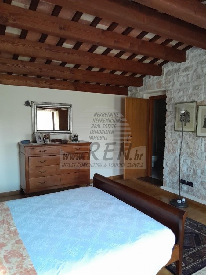 Unutrašnjost se sastoji od tri prostrane spavaće sobe, moderno uređene kupaonice, udobnog dnevnog boravka te kuhinje s blagovaonicom koja se prirodno nadovezuje na vanjski prostor. Svaki detalj pažljivo je osmišljen kako bi spojio tradicionalni karakter kamene arhitekture s komforom suvremenog života.